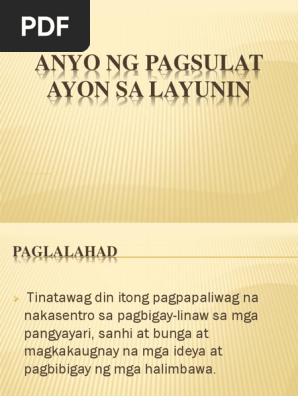 Anyo Ng Pagsulat Ayon Sa Layunin