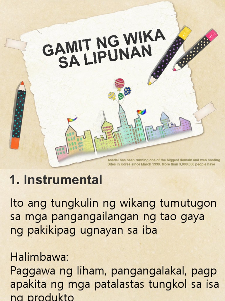 Duque Georgette Floreanne L. Instrumental ang wika ay ginagamit upang makuha ng tagapagsalita ang kanyang mga kinakailangan katulad lamang ng materyal o serbisyo. Wastong pag gamit ng malalaki at maliliit.