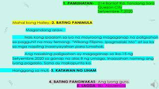 Ano ang nais mong maging resulta mula rito. Ang pagsusulat ng liham ay isa sa pinaka-unang pamaraan ng pagbibigay ng impormasyon. Dapat ay hindi maligoy ang pananalita sapagkat ito ang nagiging dahilan na hindi maunawaan ng tatanggap ng sulat ang impormasyon na gusto mong sabihin.