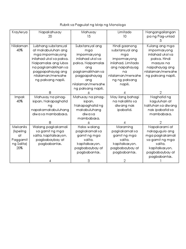 -oras at lugar na kinalalagyan ng tauhan. Binibigay din ang iskrip sa mga aktor upang sila ay makapagmemorya ng mga linyang iimikin at mabigyan ng gabay sa mga mangyayari sa dula-dulaan o pagtatanghal. Nagiging instrumento ang pagsulat sa paglalahad ng kuro-kuro pala-palagay o opinion tungkol sa mahahalagang bagay isyu o paksa 4.