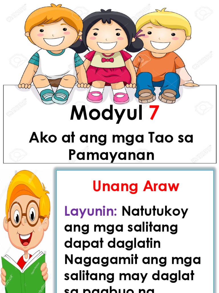 Halimbawa ng wikang panturo - 703293 Subject. Modyul 7 sa Pamayanan Ako at ang mga Tao 52.