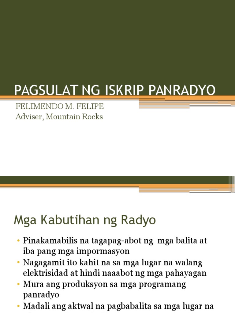 Pagsulat Ng Iskrip Ng Programang Panradyo