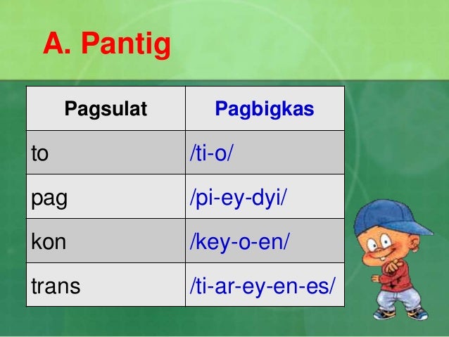 Ibig sabihin isa-isang binibigkas sa maayos na pagkakasunod-sunod ang mga titik na bumubuo sa isang salita pantig daglat inisyal akronim simbolong pang-agham at iba pa. Katutubong salita mula sa ibang wikain sa Pilipinas na may kahalagahan cultural. Sa pagbaybay ng mga salita mula sa Español baybayin ito ayon sa ABAKADA.